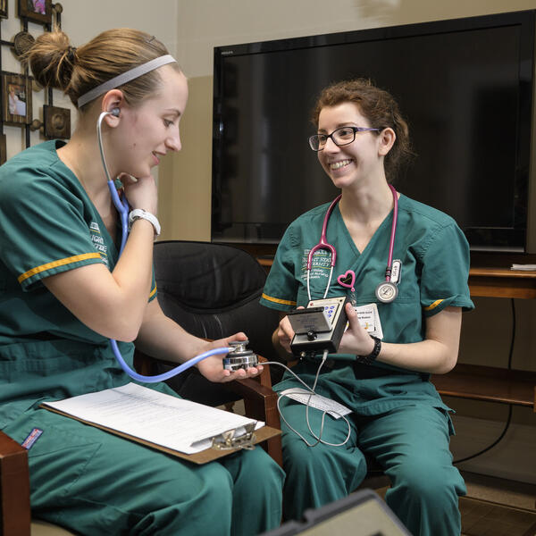 Our nine state-of-the-art nursing labs include medical simulators that mimic almost any imaginable patient scenario, including childbirth in the obstetrics lab to hospice home health care at the SHARE House located on the campus of St. Leonard’s Health Care Center in Centerville, Ohio. Students have access to an open lab, equipped with task trainers and simulators, to practice learned nursing skills in an independent and supervised setting.